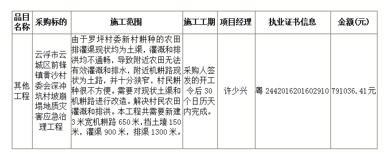 - 下一篇:云浮市云城區前鋒鎮黃沙村委會深沖坑村坡崩塌地質災害應急治理工 2021/8/18